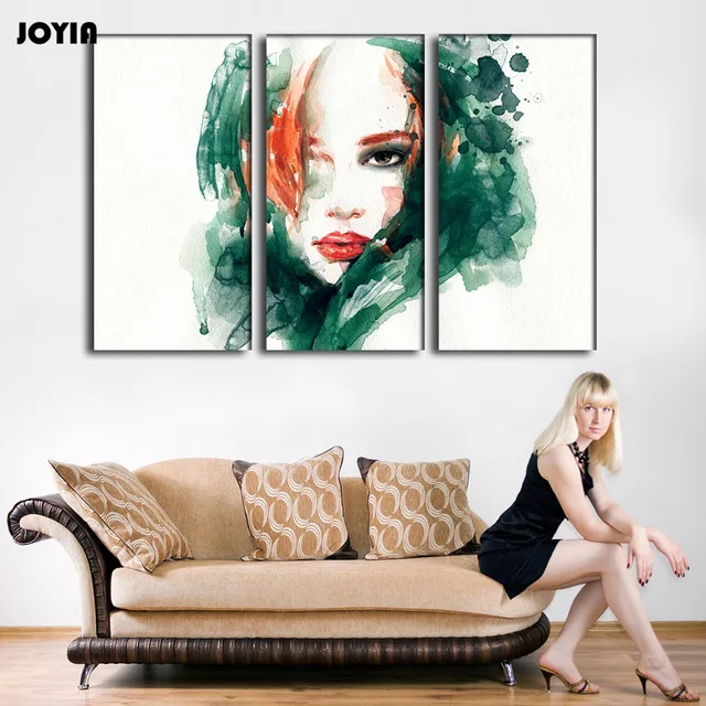 3 Piece Lukisan Kanvas Kecantikan Rambut Panjang Wanita Kamar